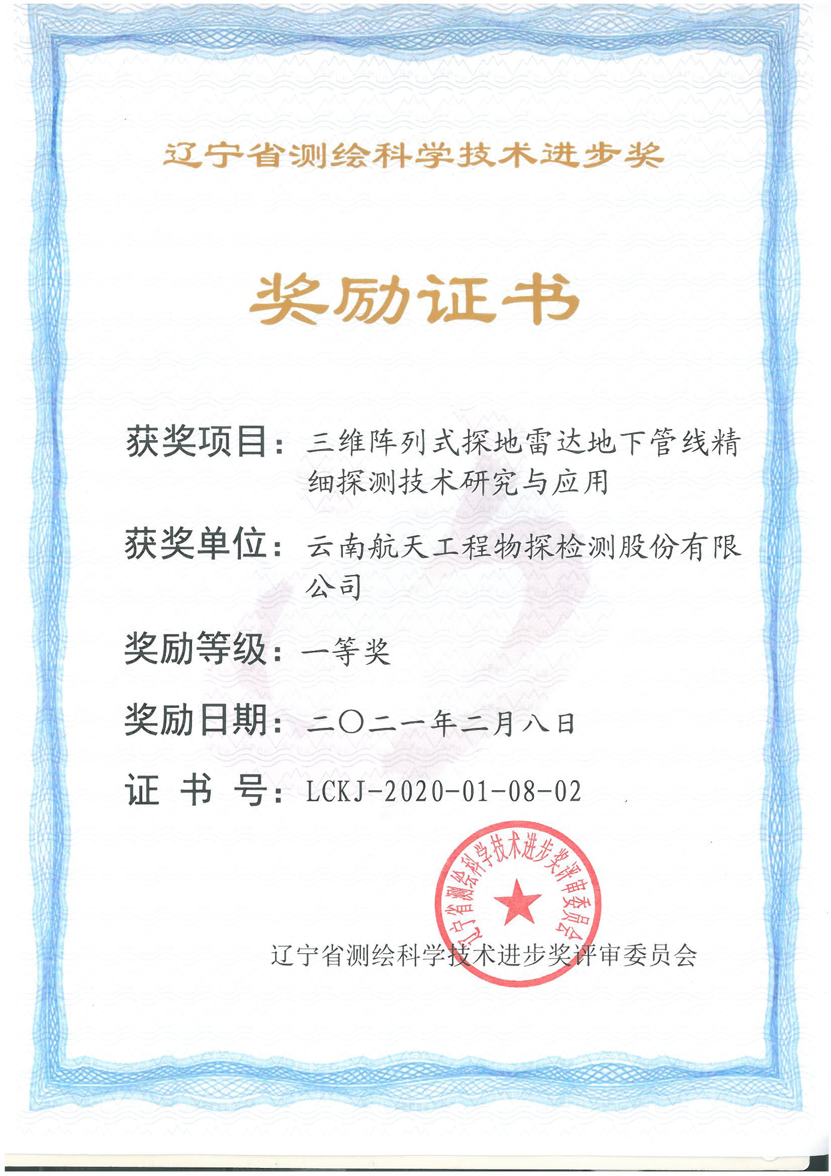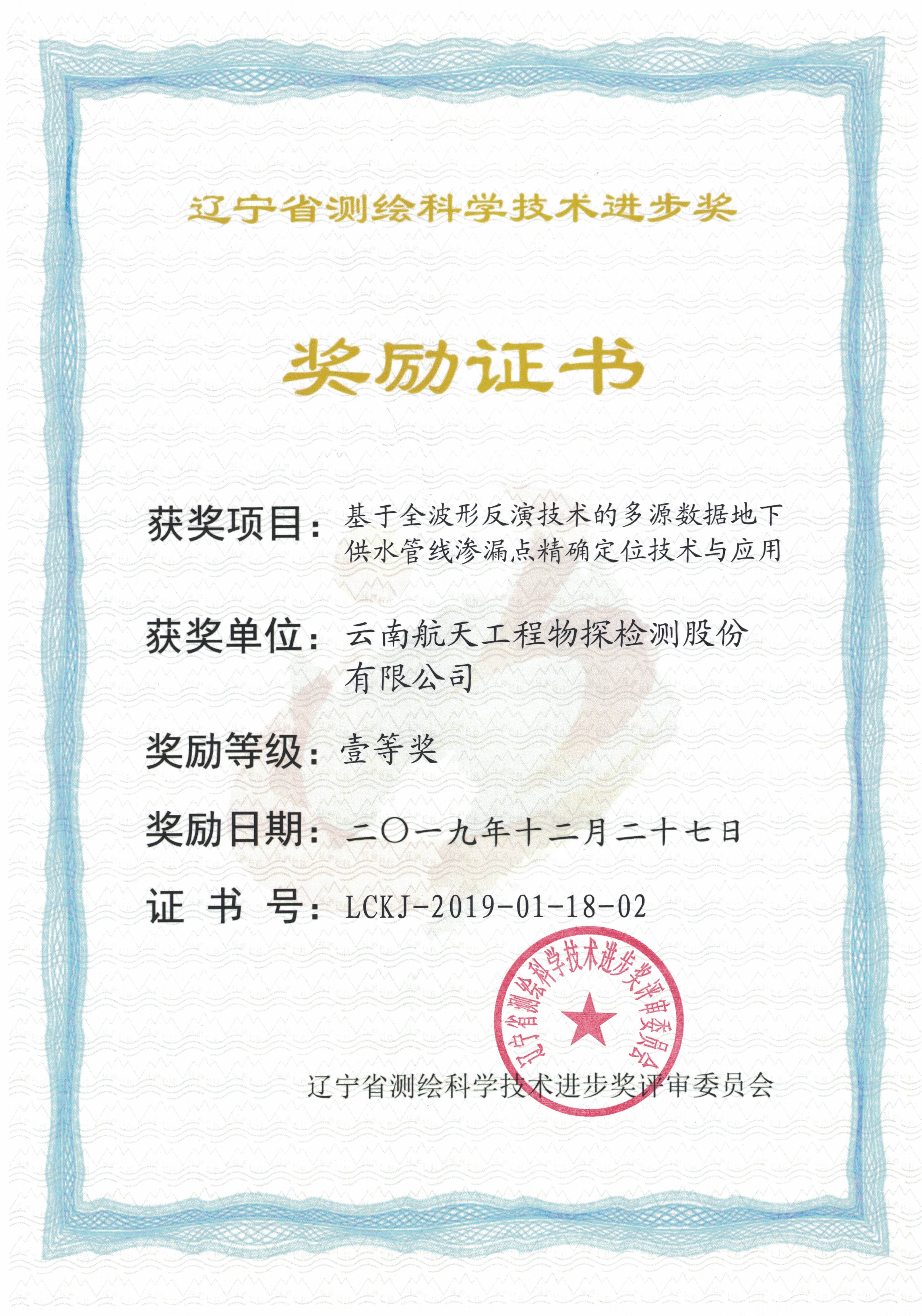 遼寧省測繪科技進(jìn)步一等獎(jiǎng)